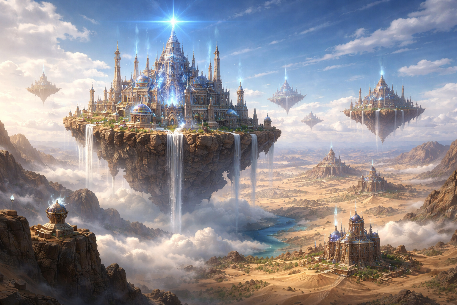 Ulyses is a colossal city suspended high above the world, where the sky itself serves as both road and horizon. Vast platforms of marble and crystal drift in careful balance, bound together by ancient magic and unseen forces. Only those who can fly, teleport, or command sky-bound vessels may reach its gates—no road has ever touched Ulyses.