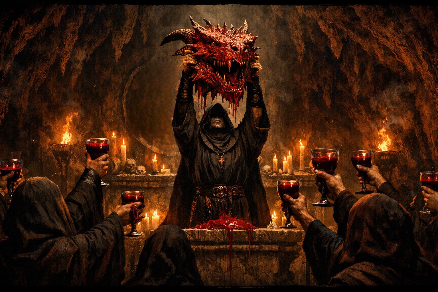 The True Lineage kneel only to Vorthalax, the Dragon God of Dominion. They believe dragons are divine incarnations, and humanity is livestock awaiting purification. Members bind themselves to dragons through ritual marriage, offering flesh, blood, and devotion in ceremonies that blur worship and consumption.