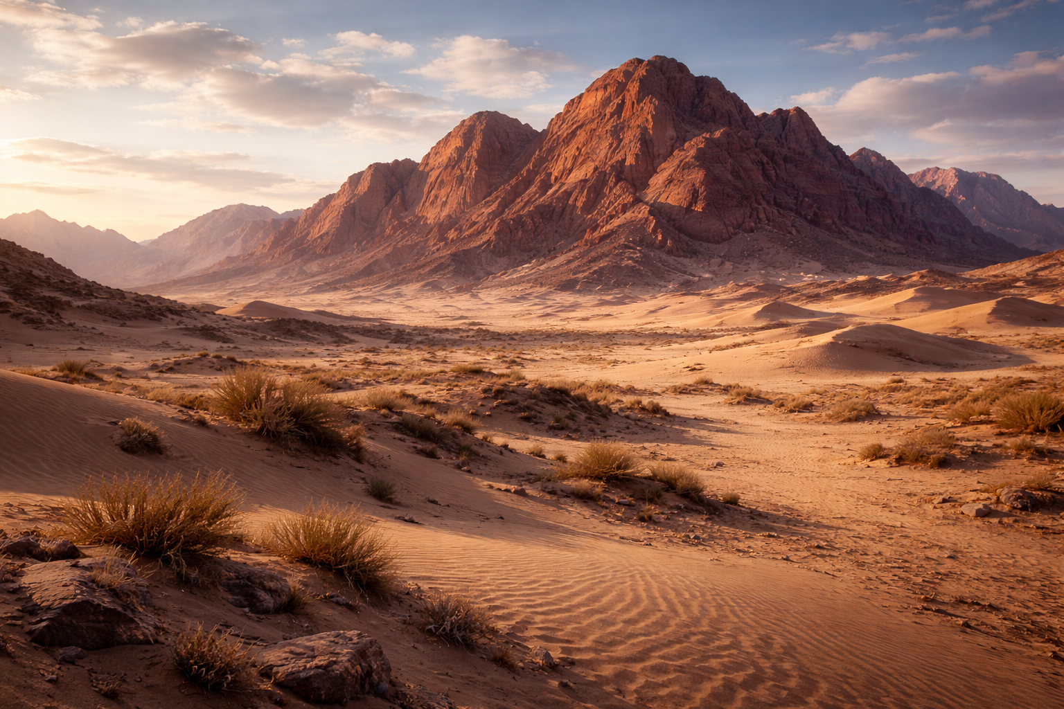 Sun-scorched sands and dry land by day. Endless stars and cold by night.